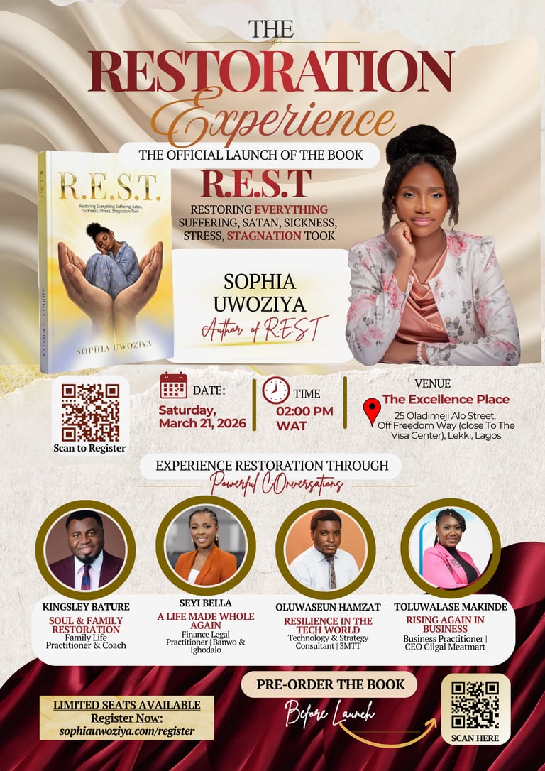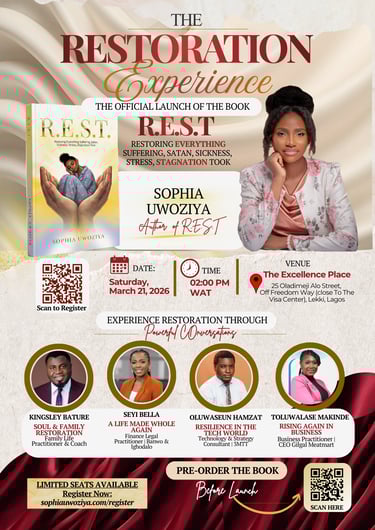 An intimate time of healing, storytelling, and restoration and the launch of the book R.E.S.T — Restoring Everything Suffering, Satan, Sickness, Stress, Stagnation Took.